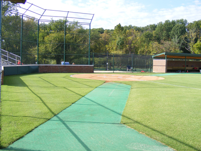The mound and home plate are a Marmound Mixed clay we have from Southern Athletic that is shipped in from Kentucky. The skin portion of our field is a red crimson infield conditioner that is shipped in from Texas, which is capable of absorbing 2 inches of water.